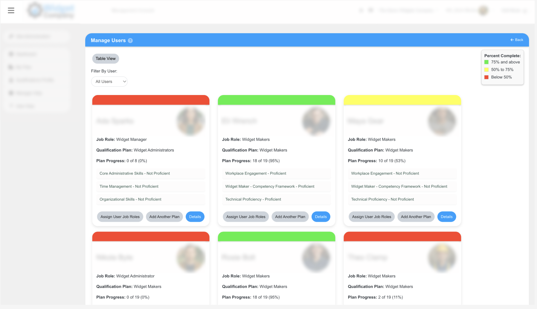 A visual, card-based interface designed to give managers a fast, intuitive view of qualification progress.